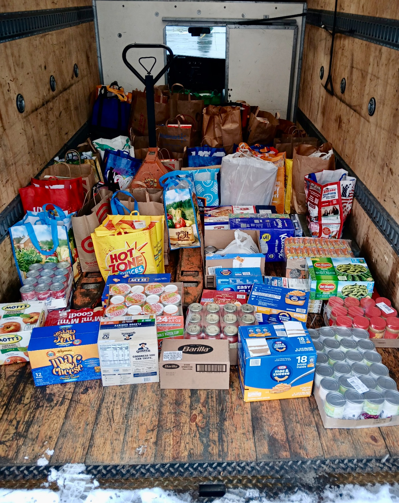 We also have to buy more food so a monetary donation would also be good. See donate button below. We have two drop off areas in Town for donations. For large donations, behind the Town Hall on Turk Hill and smaller donations can go to the library.